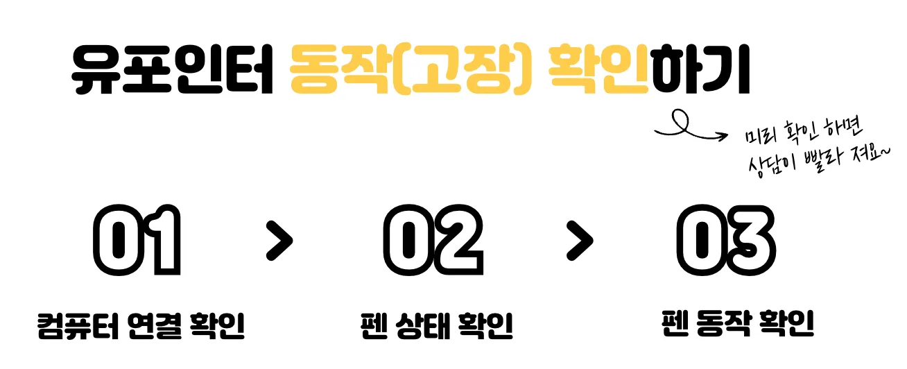 가장 빈번한 동작 오류가 해당 부분입니다. 유포인터가 컴퓨터에 연결되어 있는지 확인 하는 것 입니다.
