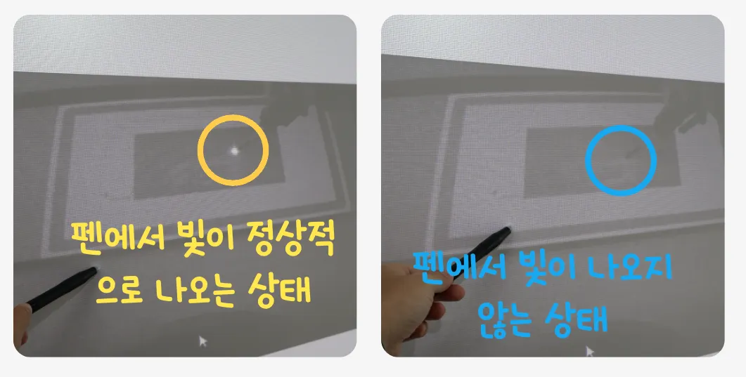 전자 펜으로 칠판에 클릭을 해봅니다.