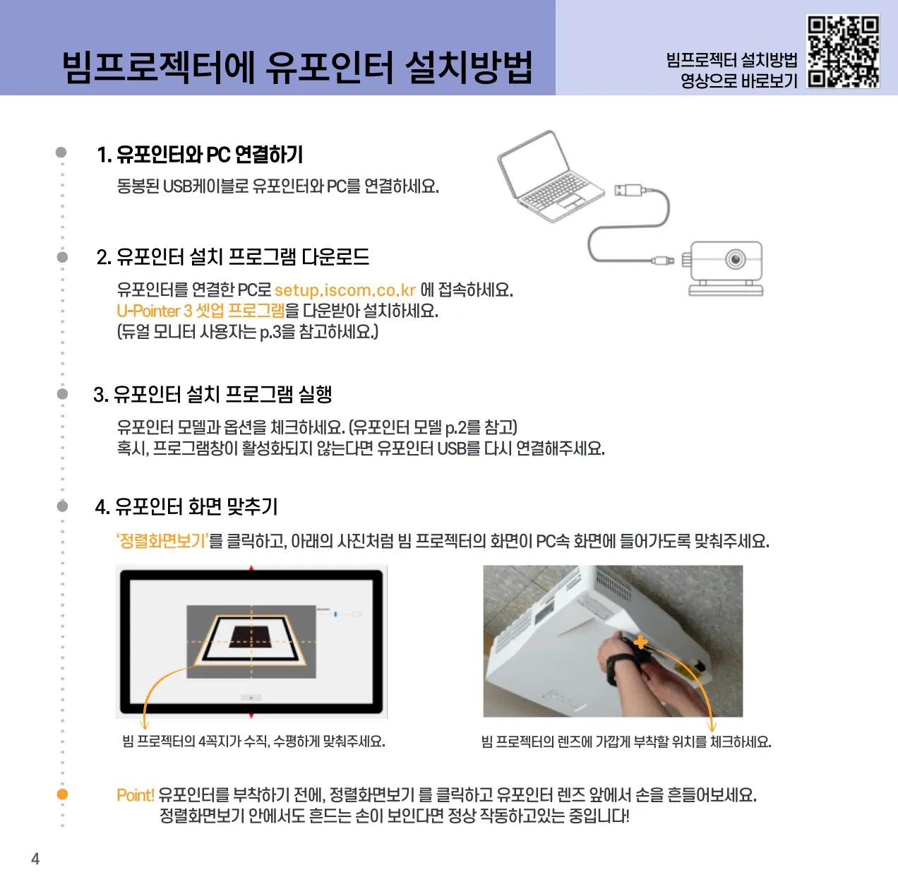 유포인터를 빔프로젝터에 설치하는 방법 안내입니다.