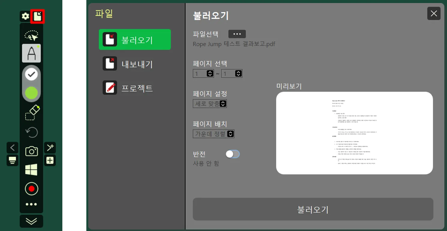 파일 > 불러오기 > PDF 파일선택 > 불러오기