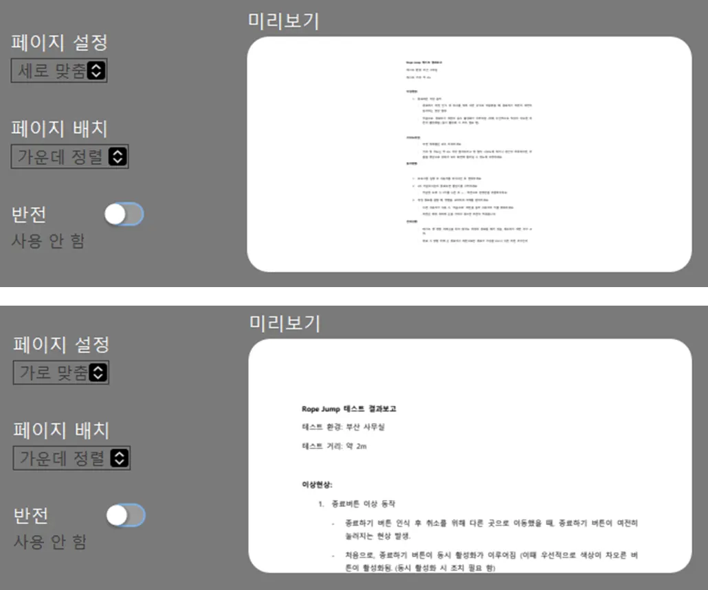 페이지 설정 (미리보기를 통해 사전 확인할 수 있습니다.)
